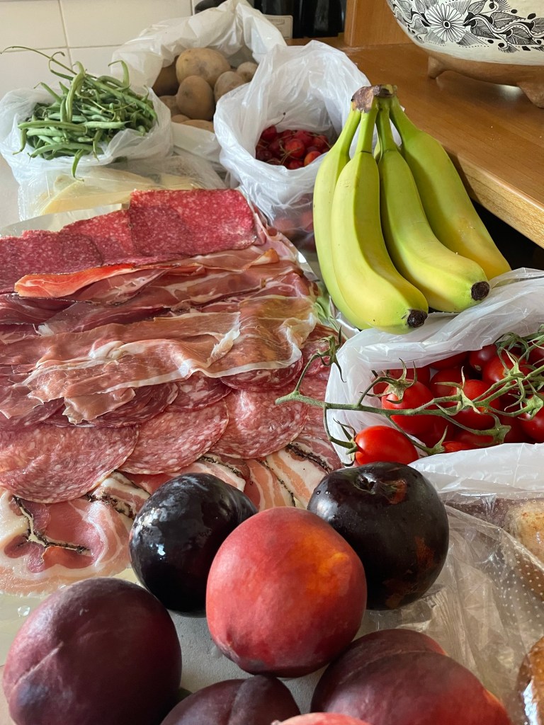 My brilliant friend had the idea to order 15 Euro worth of mixed meat and cheeses at the salami truck the first time we went since we had no idea what to order!! (There are probably 15 different kinds of salami!) Now I order “un misto di salumi e formaggi” each time I go. Sometimes I ask for 10 Euro worth, sometimes 20 depending on what we have going on.